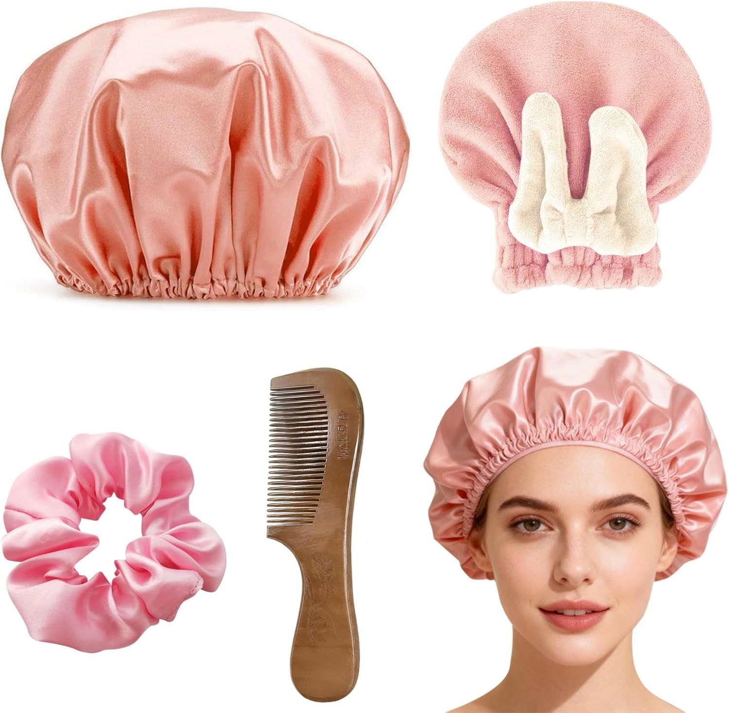 4PCS Shower Caps for Women, Large Shower Cap, Silk Bonnet Shower Cap, Waterproo