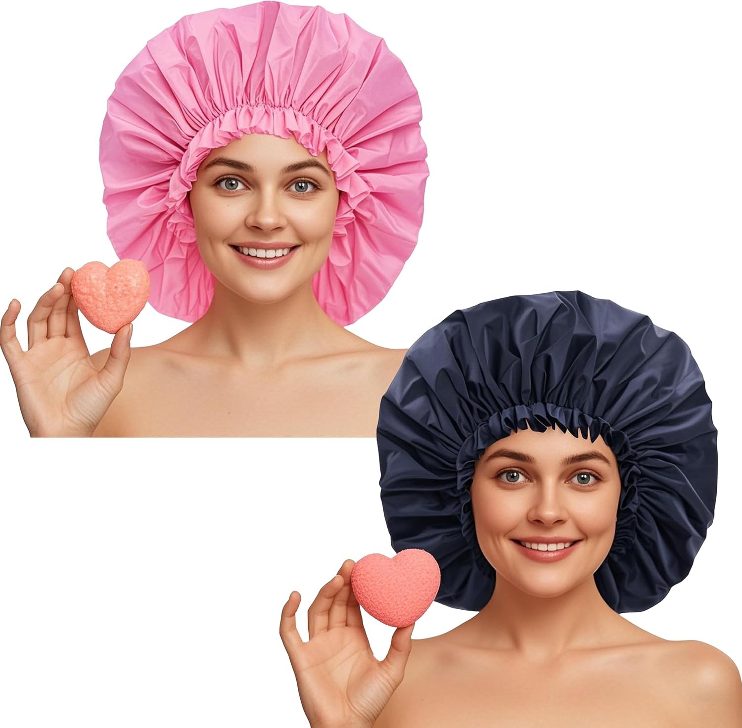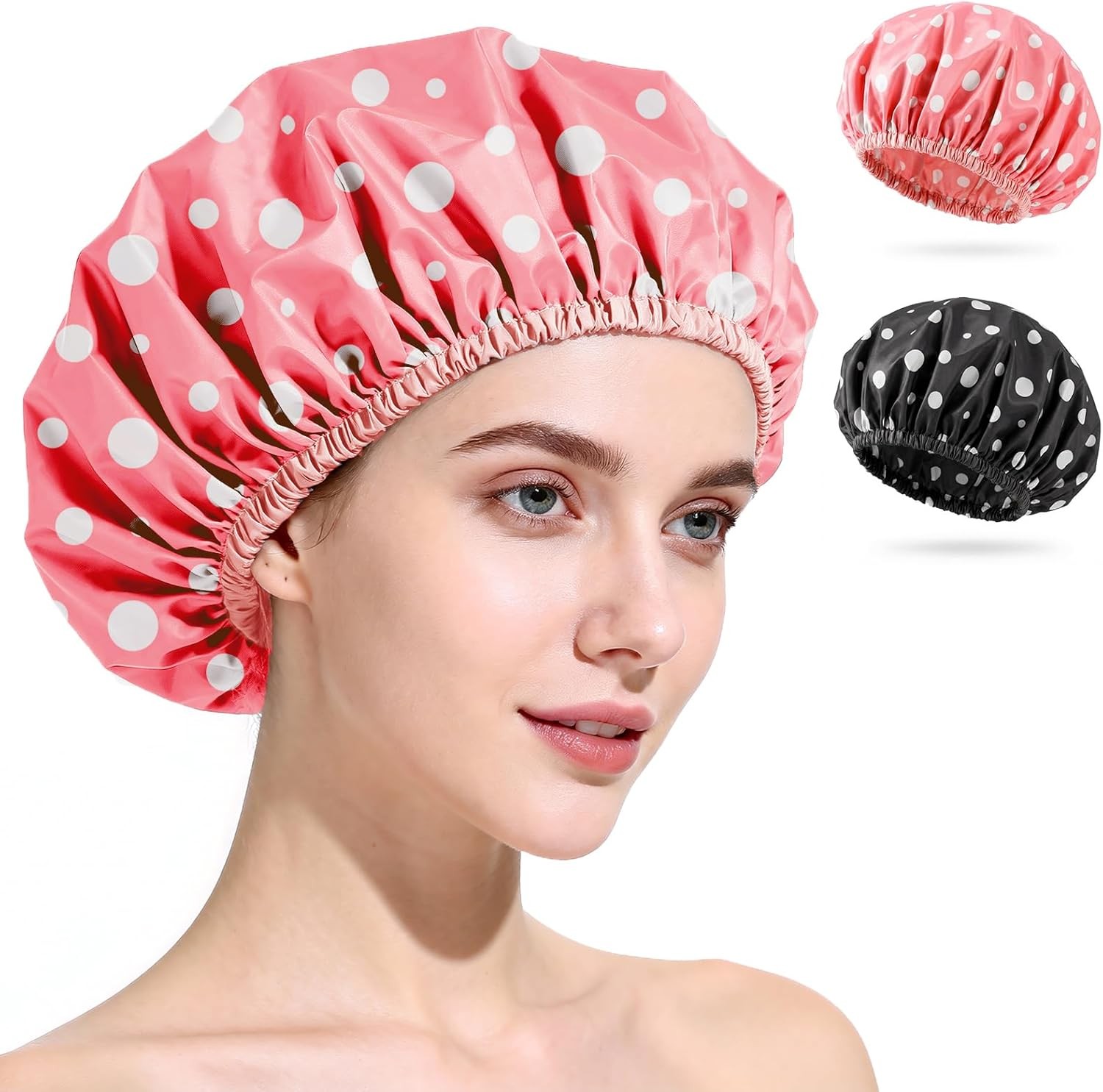Shower Cap,2 Pcs Elastic Band Double Layers Shower Caps for Women and Girls,Wat