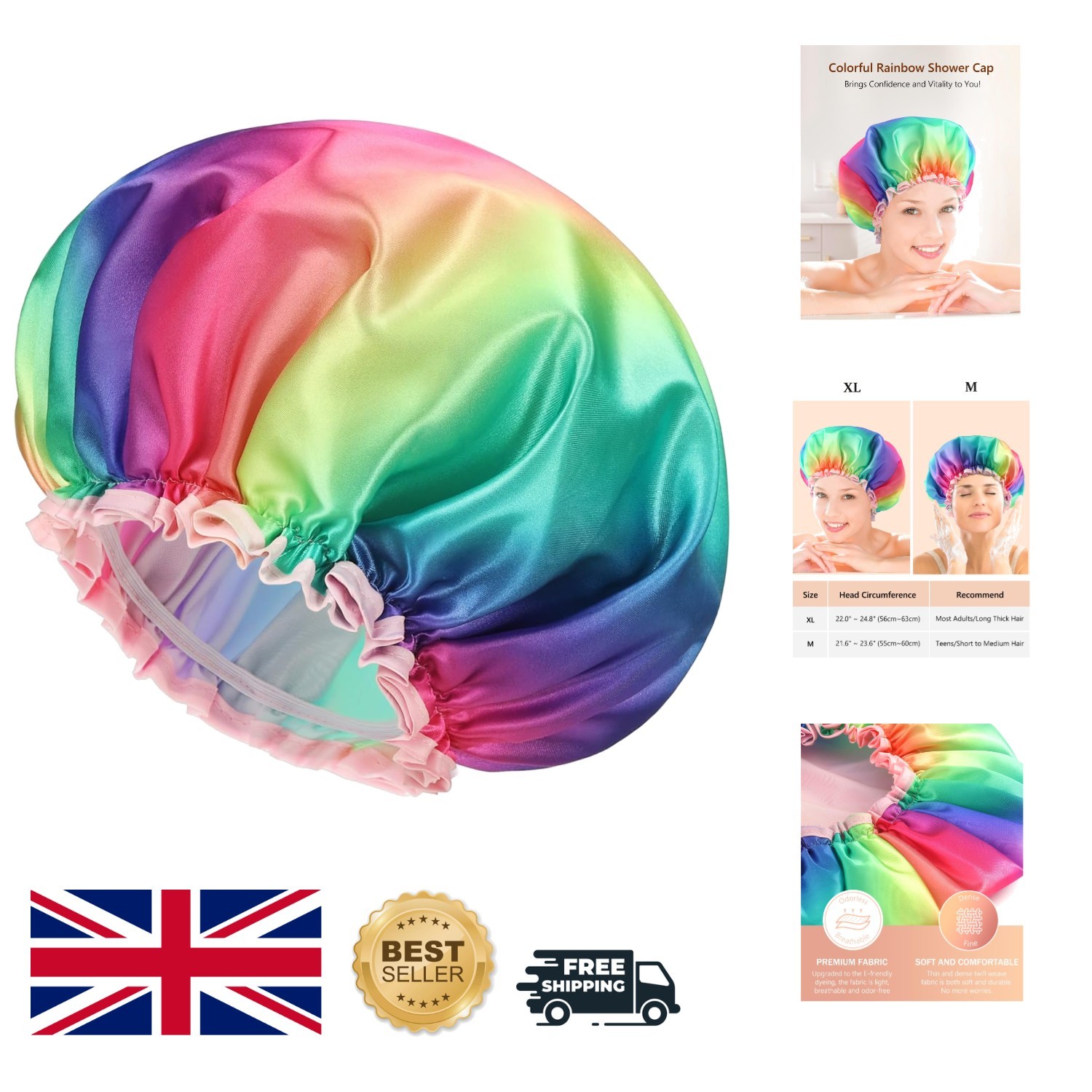 Double-layer XXL Shower Caps for Women - Rainbow Design, Reusable & Stylish