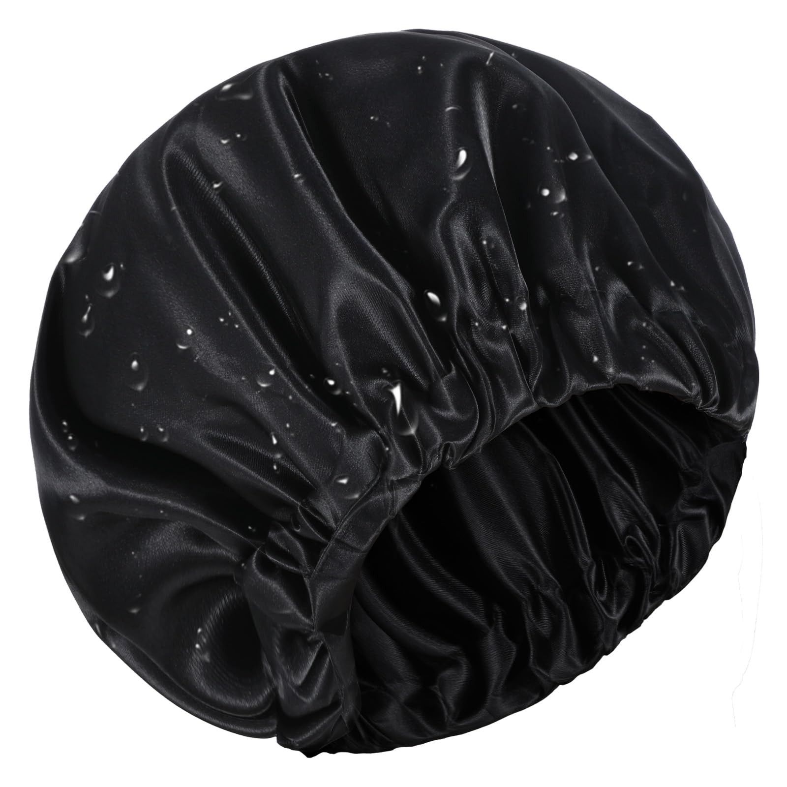 Shower Caps for Women, Luxury, Reusable-Double Layer L, Black