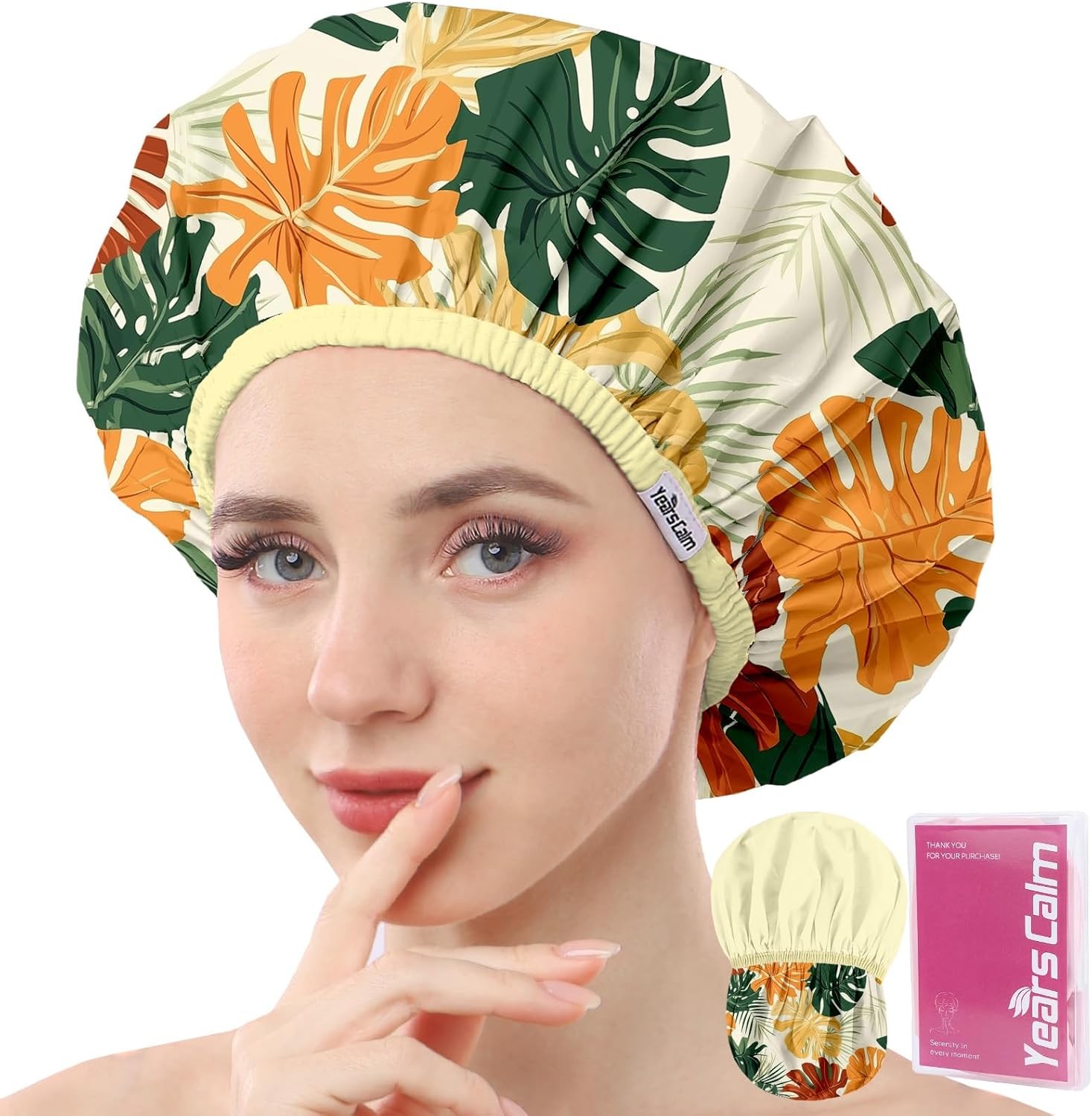 Years Calm Reusable Waterproof Shower Caps for Women, Hair Caps for Showers, Dou
