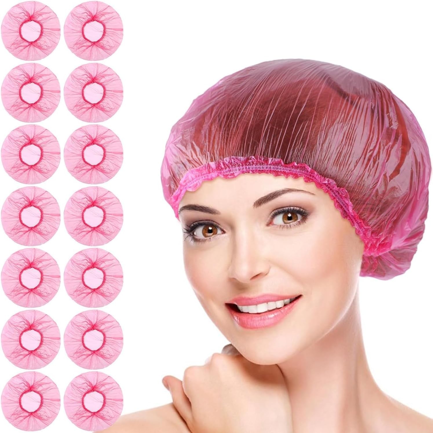 100 Pcs Pink Disposable Shower Caps,Shower Caps for Women Plastic Shower Caps S