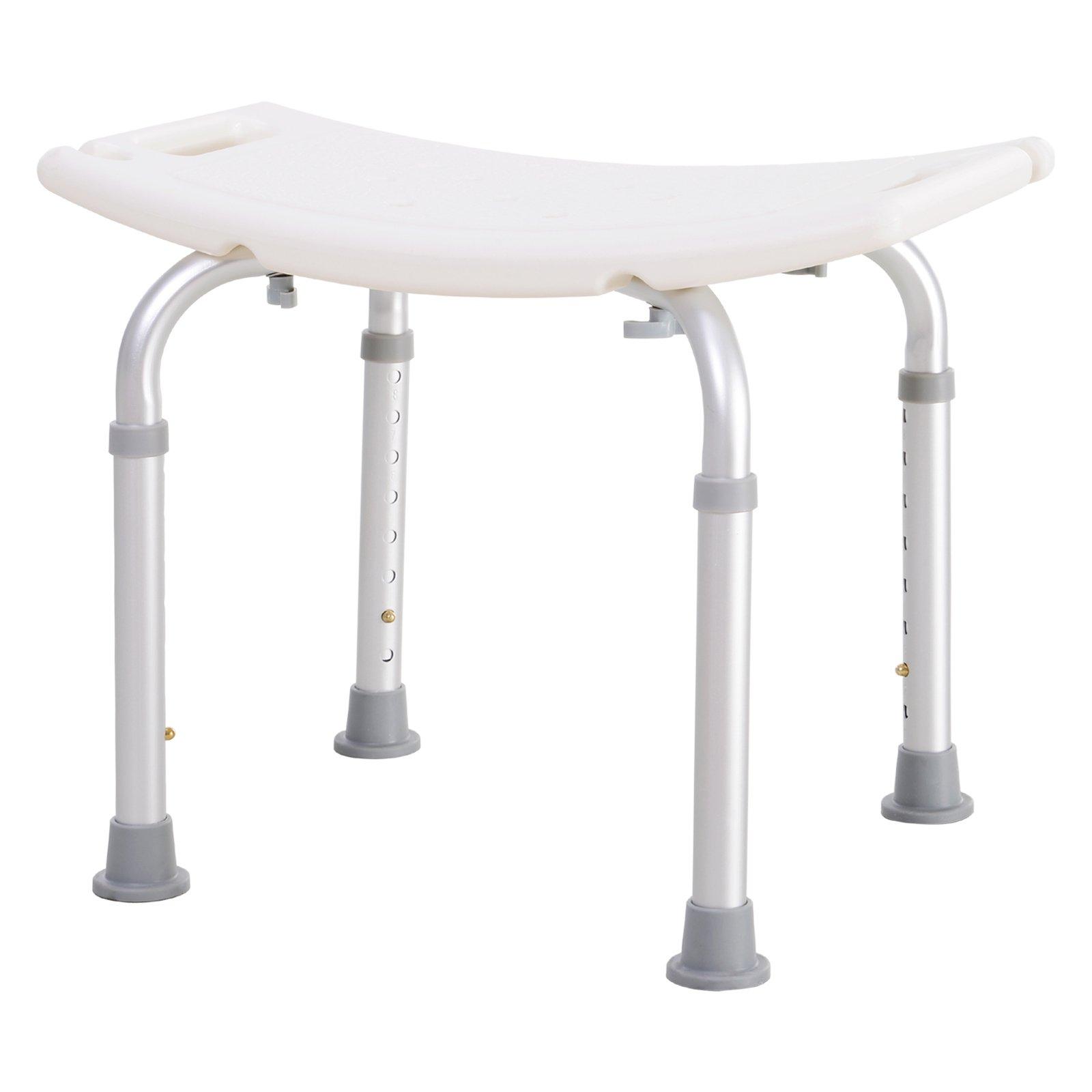 HOMCOM Shower Chair, Adjustable Height Shower Stool with Aluminium Frame and Non-Slip Feet, Bathtub Stool Seat for Elderly Disabled Handicap, White