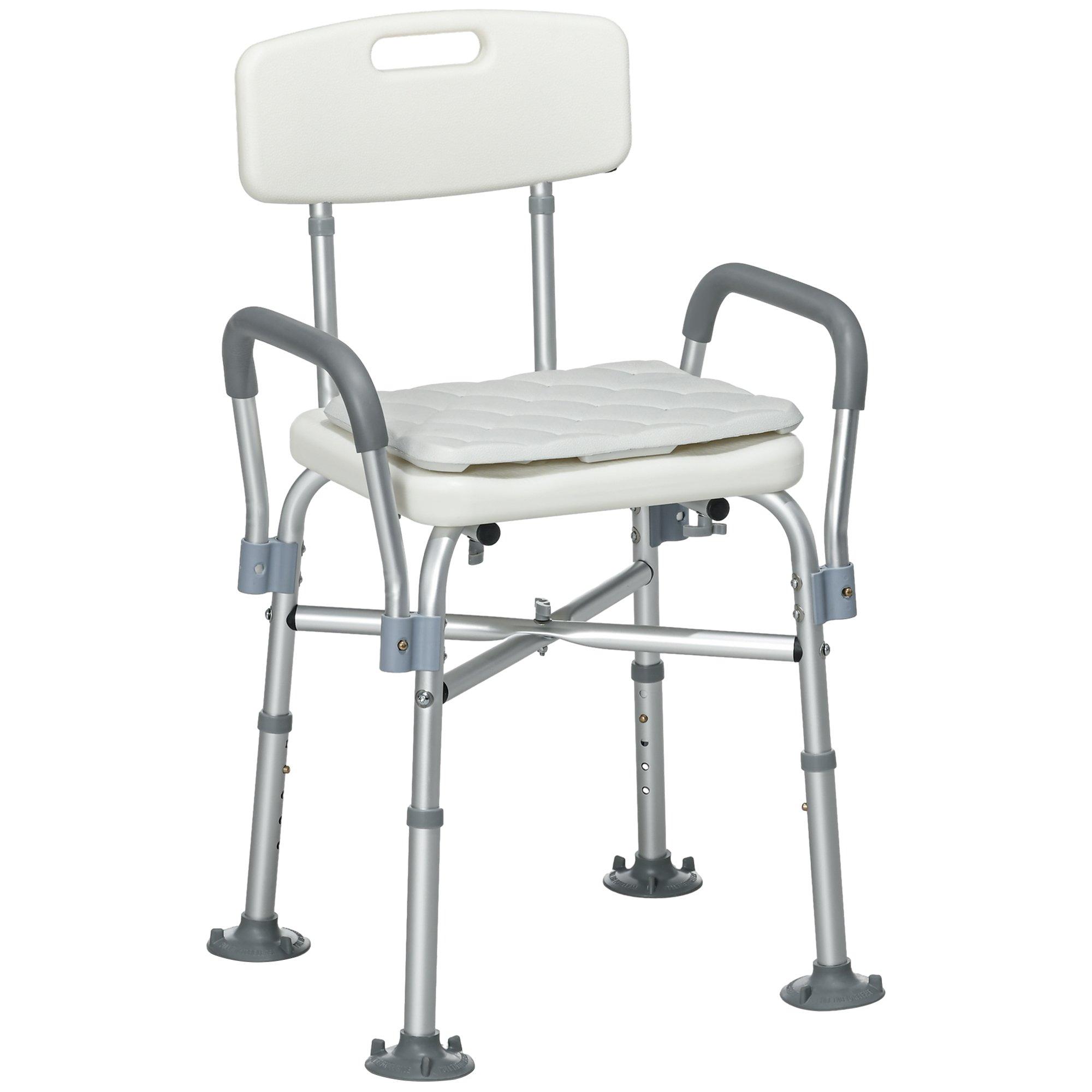 Aidapt Shower Chair with Padded Seat and Back,Height Adjustable,Non-Slip Ferrules,Shower Head Holder,Integral Handles,Lightweight Aluminium,Elderly,Disabled,Pregnancy,No Tools Required