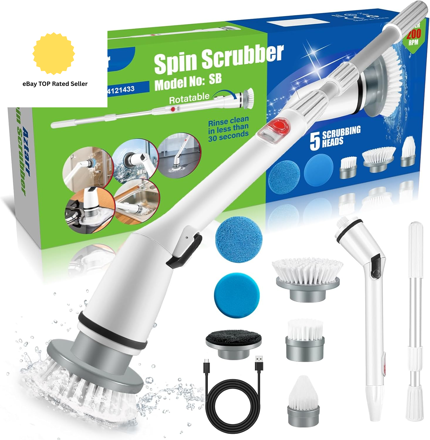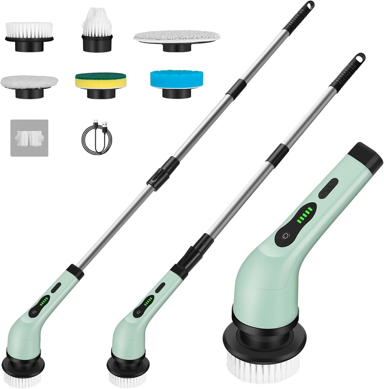 Electric Spin Scrubber, Cordless Shower Cleaning Brush with 6 Brush Heads, 2 Spe