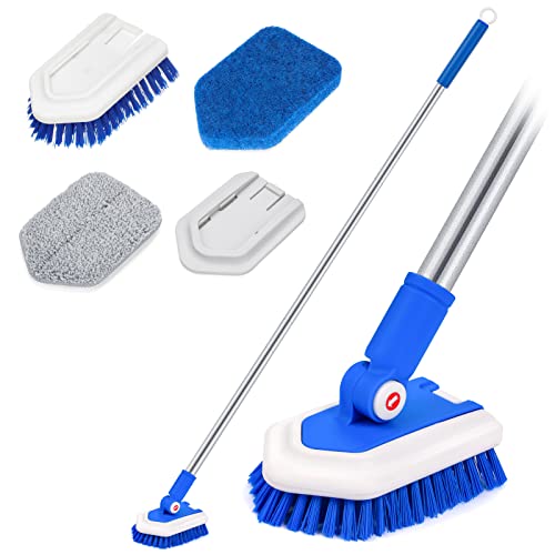 Tile Scrubber for Bathroom, 4-In-1 Shower Cleaning Brush Long Handled Scrubbing