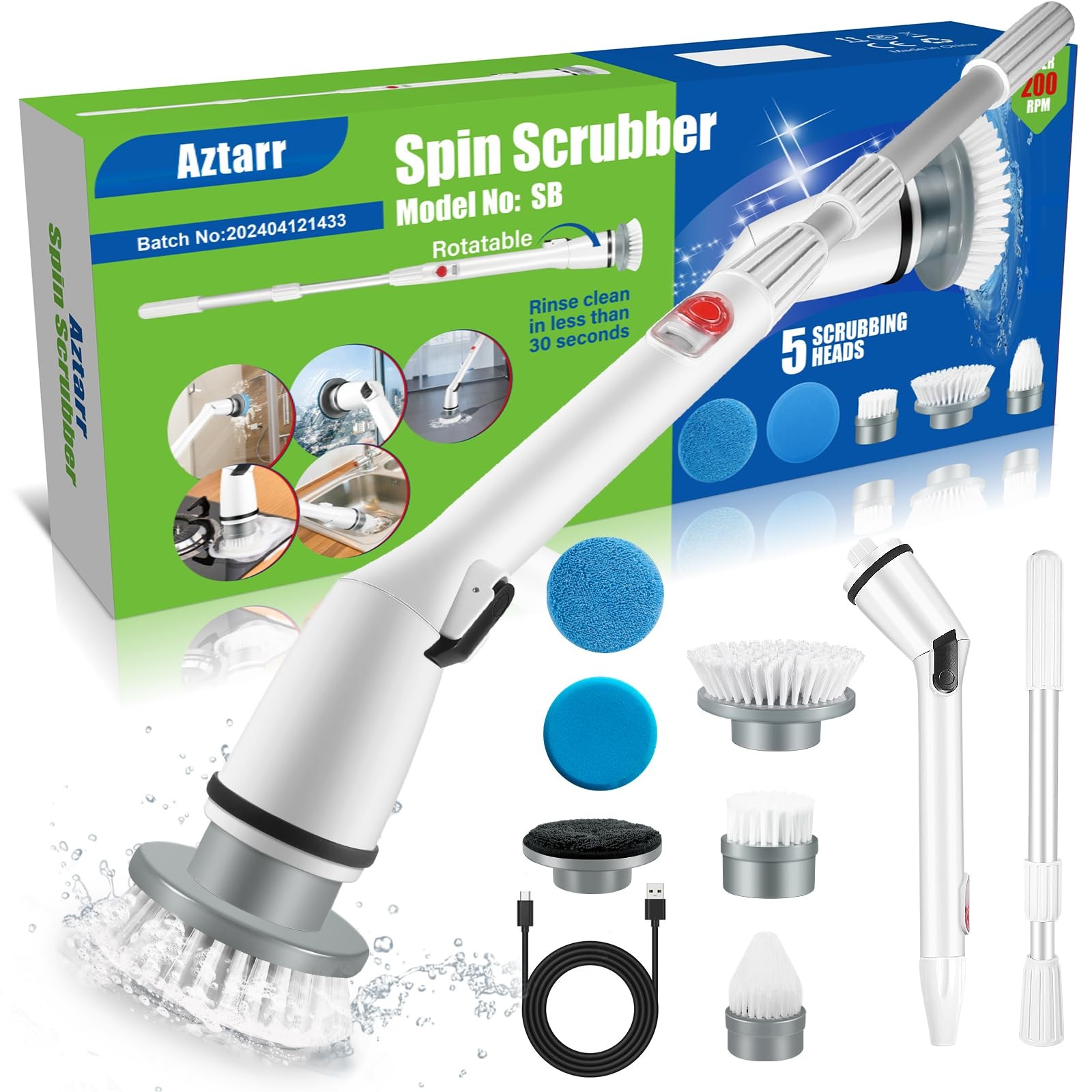 Aztarr Electric Spin Scrubber Cordless Shower Cleaner Bathroom Cleaning Brush