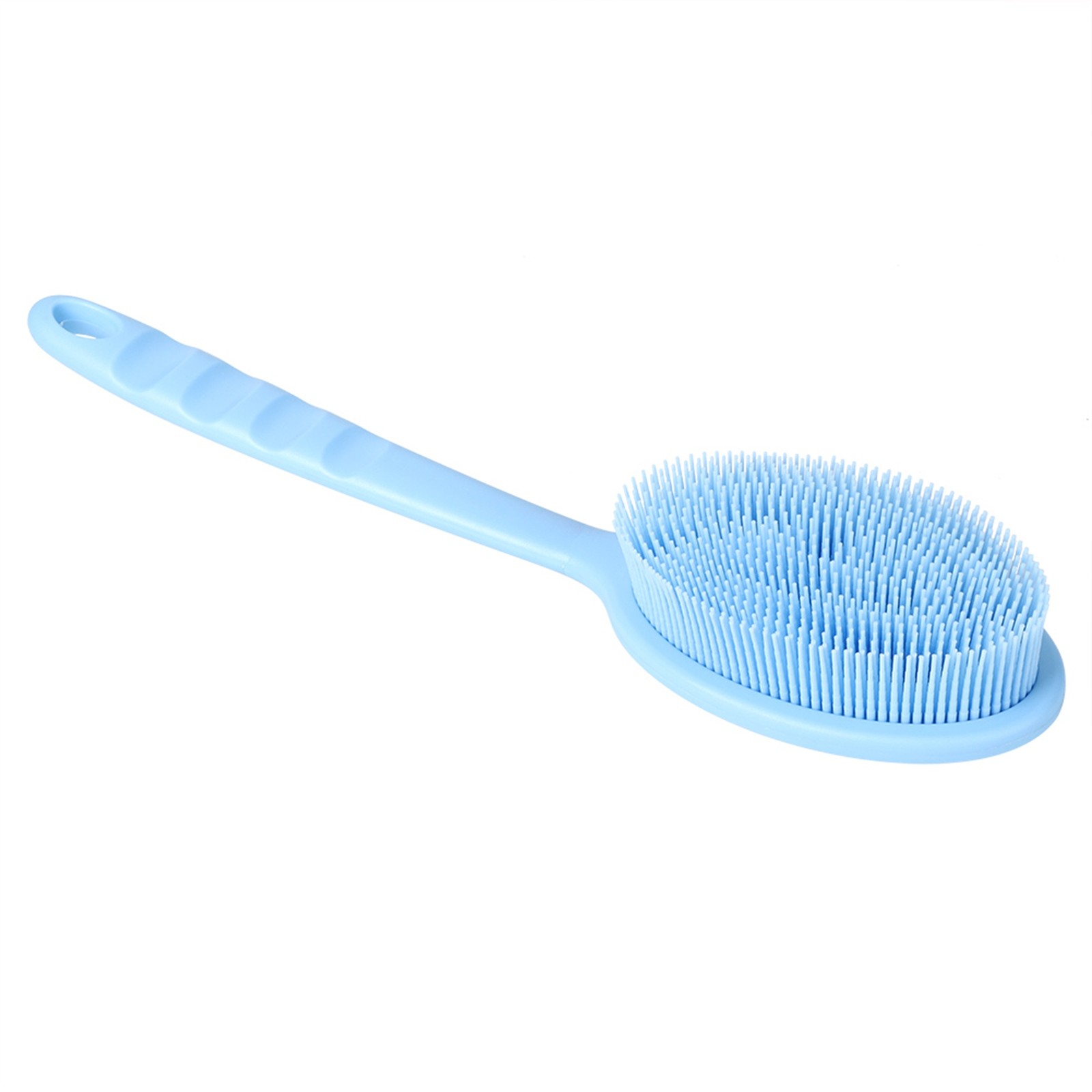 (Blue)Household Long Handle Silicone Cleaning Shower Bath Brush Kitchen Dish❀