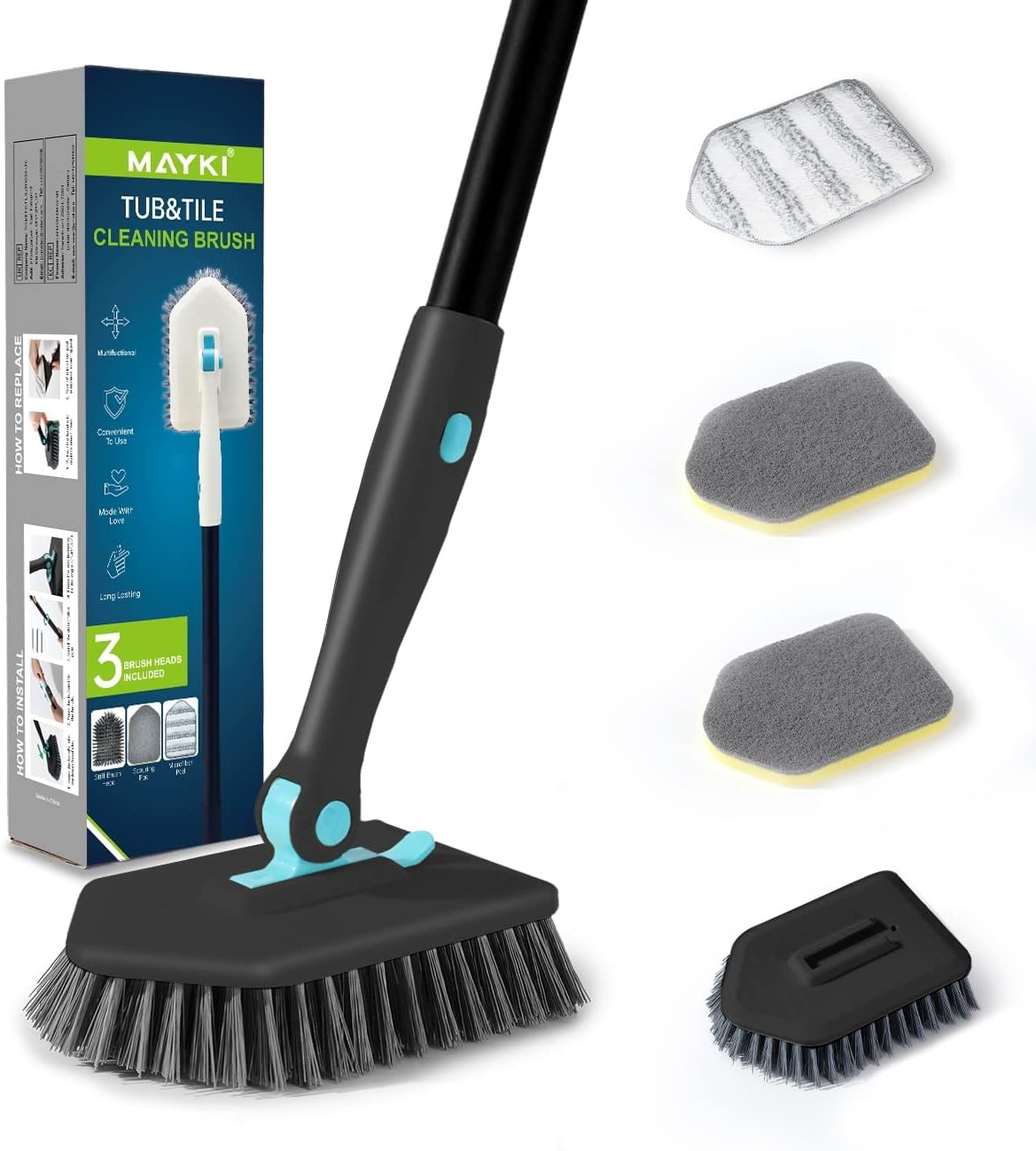 3-In-1 Shower Cleaning Brush with 51'' Long Handle, Fixable Bathroom Cleaning Brush, Long Handled Scrubbing Brush for Bathroom Tile, Adjustable Bathroom Cleaning Products by MAYKI