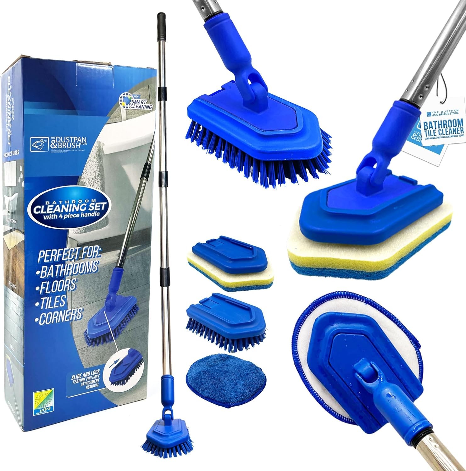 JEHONN 4-in-1 Bathroom Tile Tub Scrubber with Long Handle, Upgraded Shower Cleaning Brush, 4 Different Function Scrub Brush Attachments Head for Bath, Bathtub, Floor, Wall, Baseboard