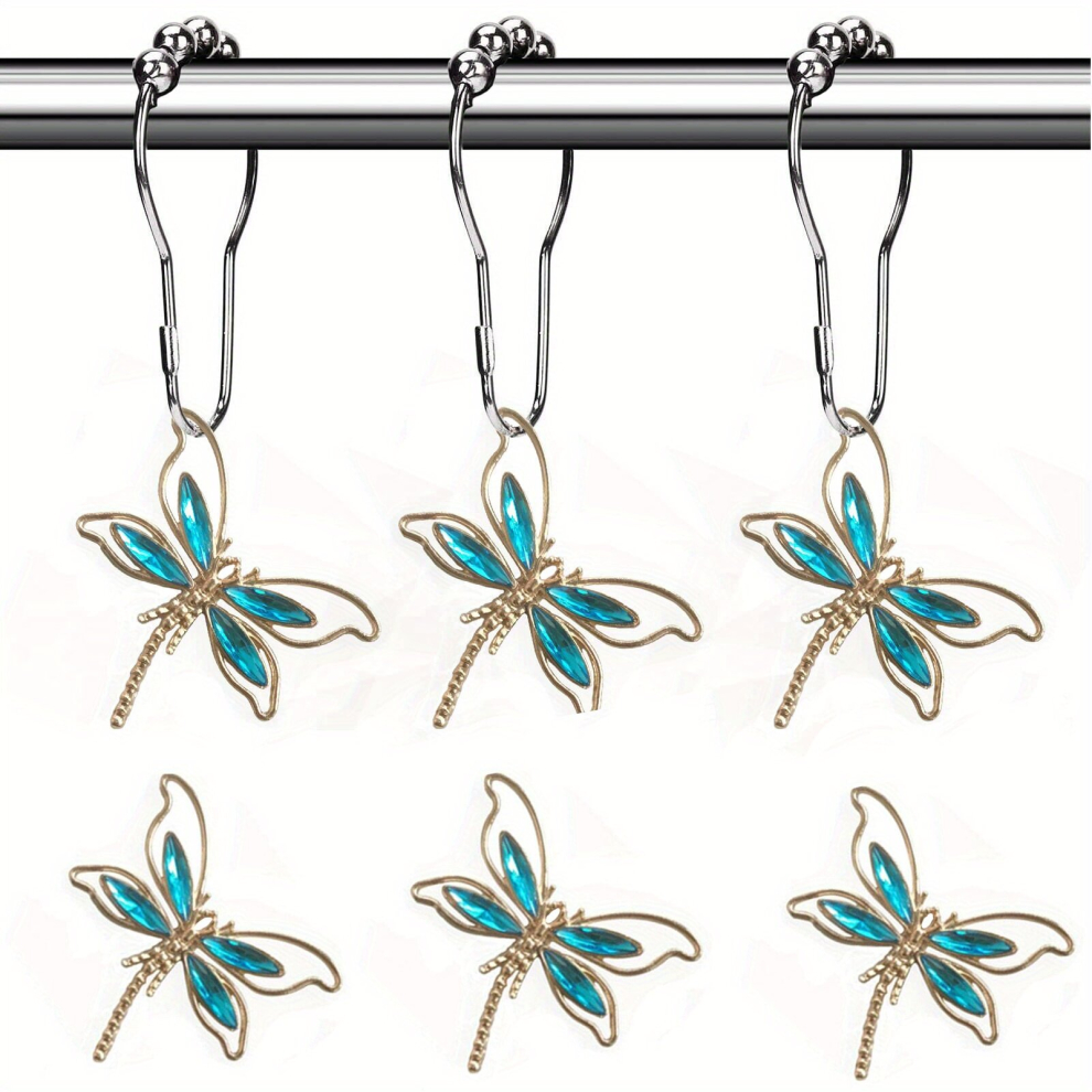 12pcs Dragonfly Shower Curtain Hook Decorative Shower Curtain Hooks Rust proof Shower Rings For Curtain Bathroom Shower Rods Bathroom Decor