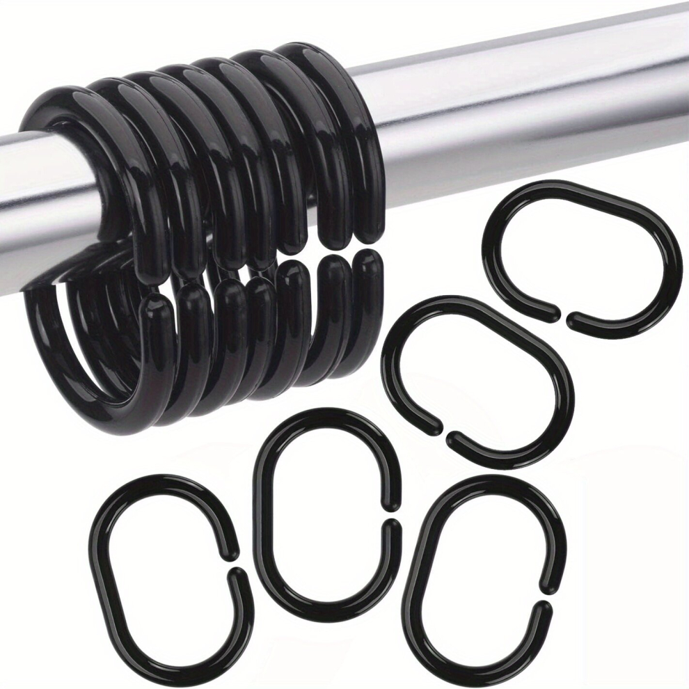 Goowin Shower Curtain Hooks, 12 Pcs Shower Curtain Rings Rust Proof Metal Oval Rings Clasp Closed Shower Curtain Rings for Bathroom Shower Rods Curtains(Black)