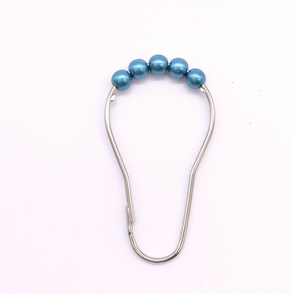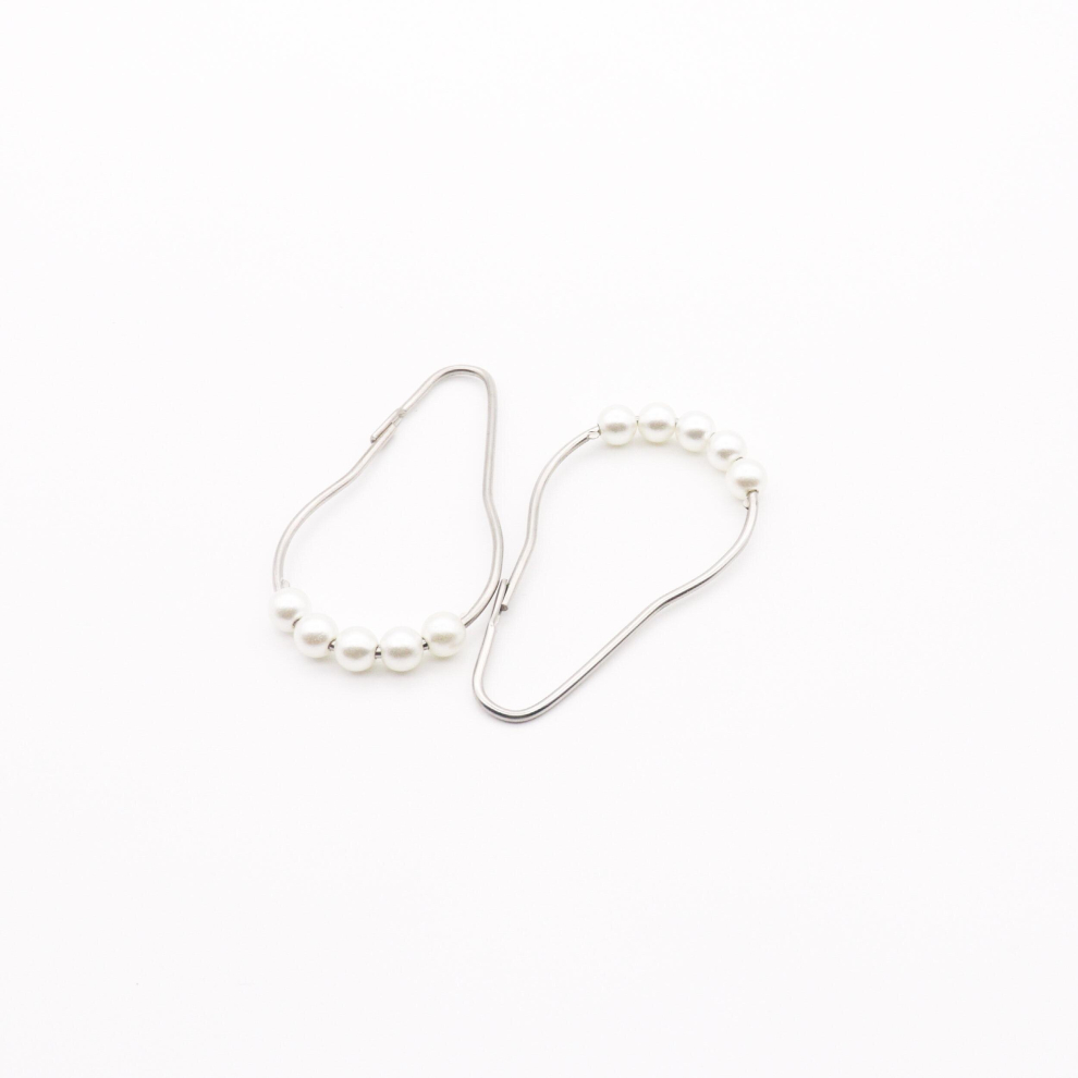 12pcs Faux Pearl Decor Shower Curtain Hooks Curtain Hooks With Five Sliding Roller Balls Waterproof Rustproof Shower Curtain Hook For Bathroom Shower