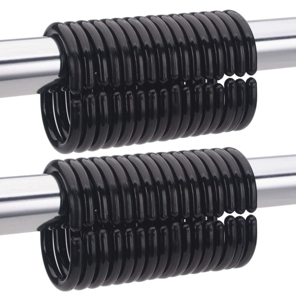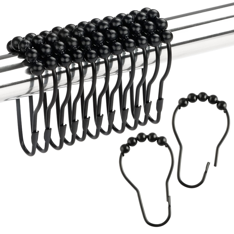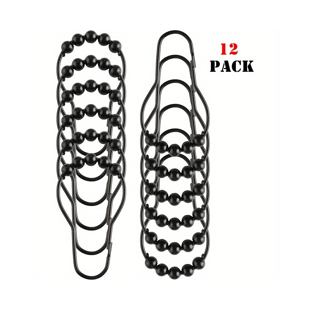 Shower Curtain Rings Rust Proof Metal Smooth Glide Double Shower Curtain Hooks for Bathroom Shower Curtains Rod, Kitchen Utensils,Set of 12,Black