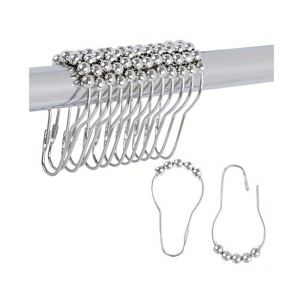 12pcs Roller Ball Shower Curtain Hooks Rust Proof Stainless Steel Shower Rings For Curtain Bathroom Shower Rods Bathroom Accessories