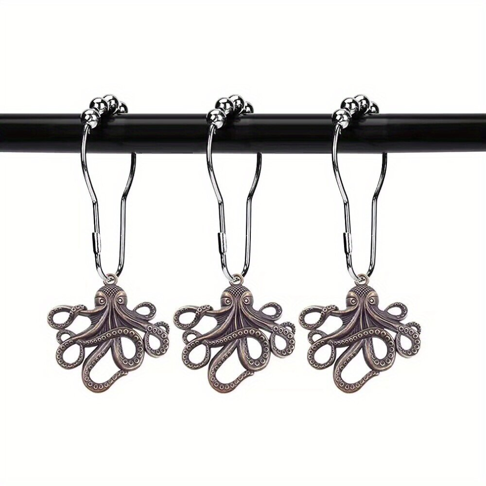 12pcs Octopus Hooks Decorative Shower Curtain Hooks Rust proof Shower Rings For Curtain Bathroom Shower Rods Bathroom Accessories Bathroom Supplies