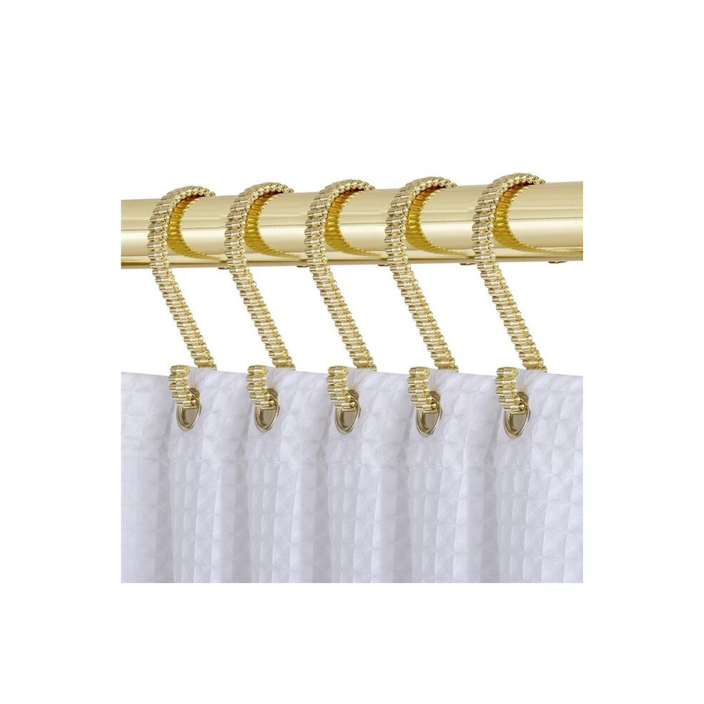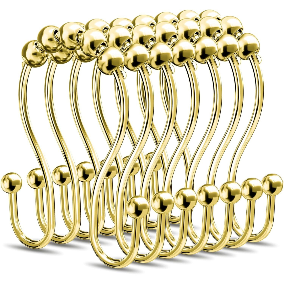 Shower Curtain Rings Rust Proof Metal Smooth Glide Double Shower Curtain Hooks for Bathroom Shower Curtains Rod, Kitchen Utensils,Set of 12,Gold