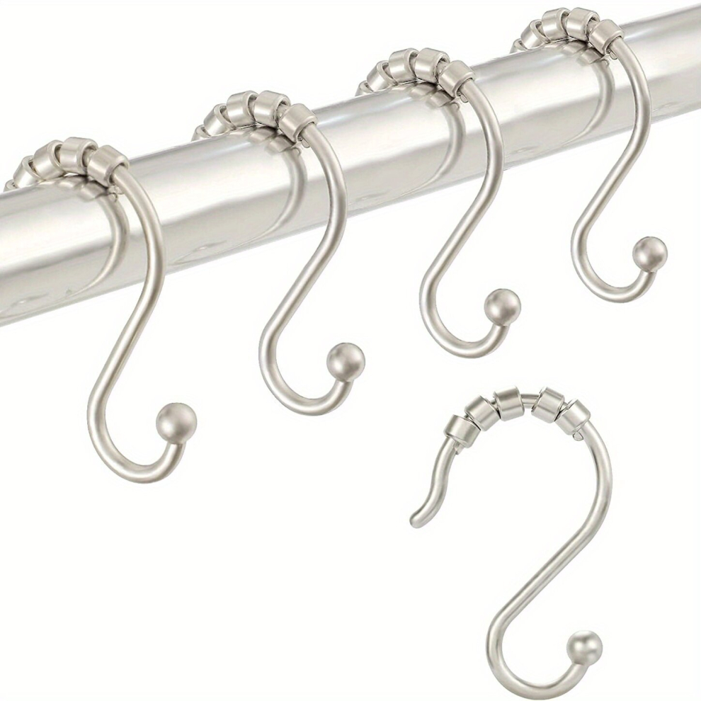 12pcs S shaped Roller Shower Curtain Hooks Shower Rings For Curtain Bathroom Shower Rods functional Rust proof Waterproof Hooks Bathroom Accessories