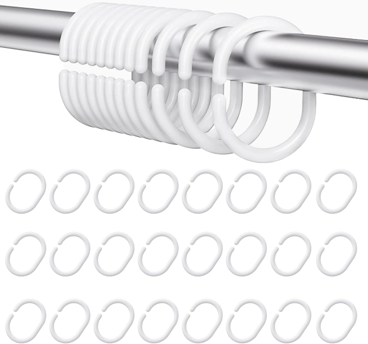 24 PCS Shower Curtain Rings Plastic Shower Curtain Hooks for Bathroom Shower Rod