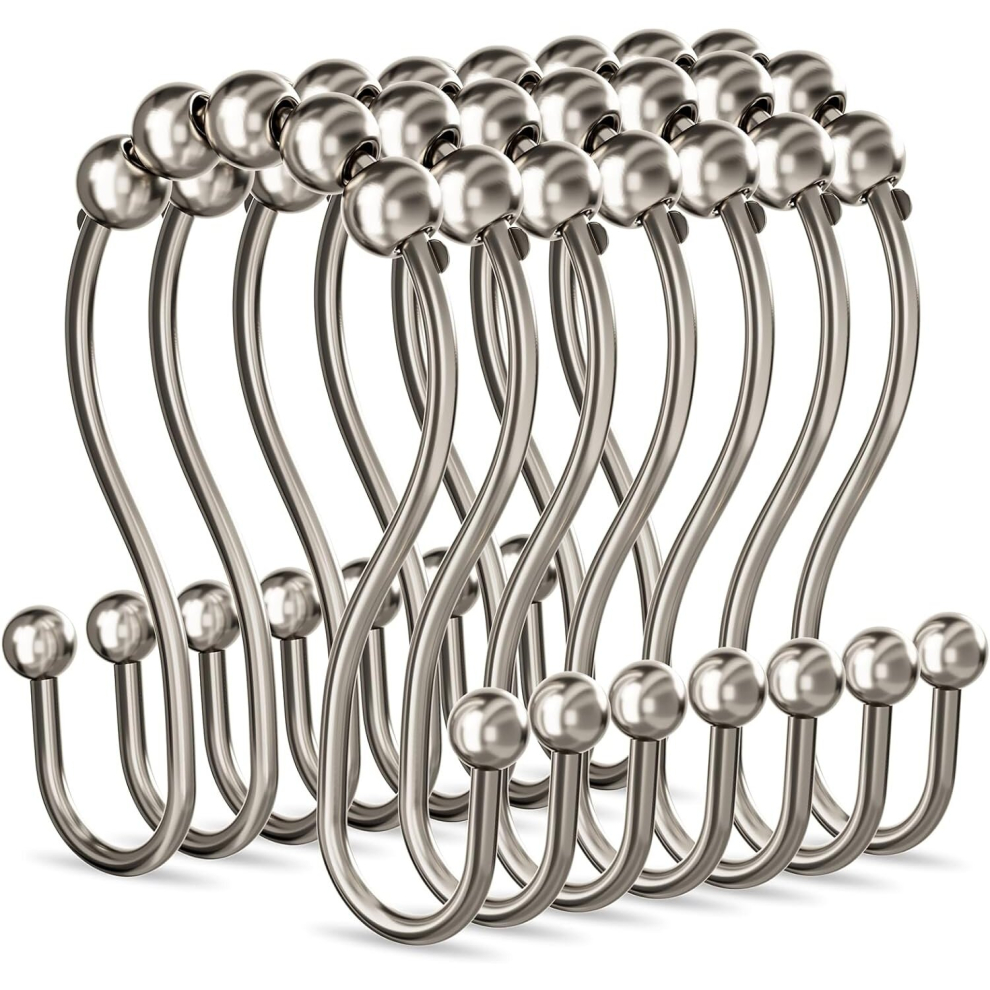 Shower Curtain Rings Rust Proof Metal Smooth Glide Double Shower Curtain Hooks for Bathroom Shower Curtains Rod, Kitchen Utensils,Set of 12,Nickel