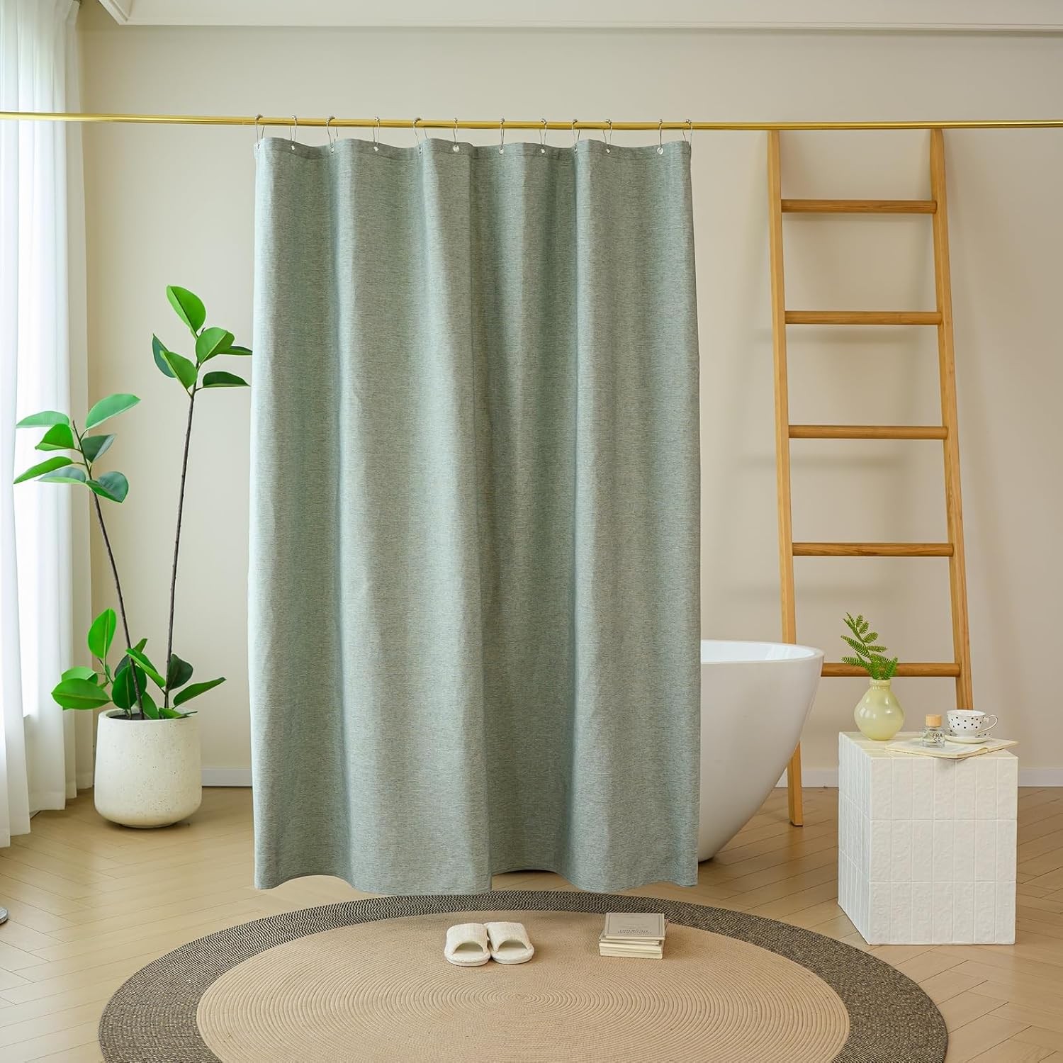 Sage Green Shower Curtain for Bathroom, Fabric Shower Curtains Faux Linen Polye
