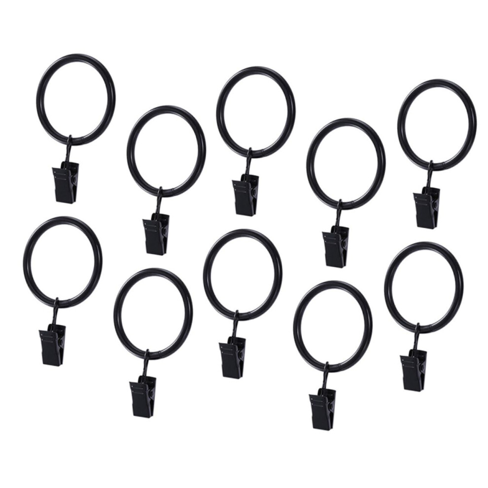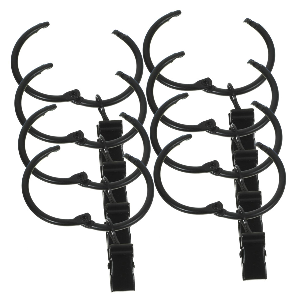 10pcs Metal Curtain Rings with Clips for Easy Sliding Shower Curtains and Home Decor Black