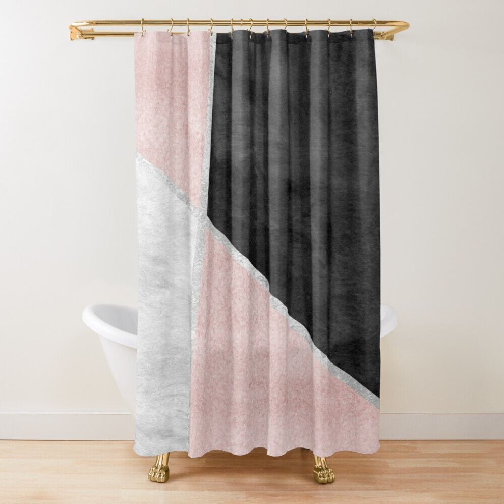 Shower Curtains Pink, Silver and Black Geometric Design for Bathroom Decor 72x72 inches