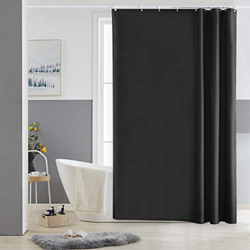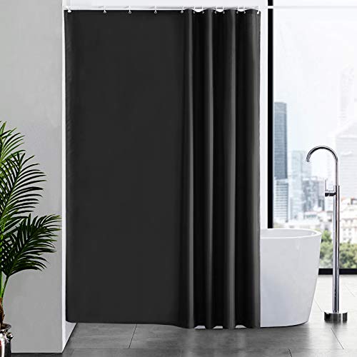 URAQT Shower Curtain Anti Mould, Waterproof PEVA Bath Curtains, Mildew Resistant Bathroom Shower Curtains with 12 Hooks, Plain Colors Bathtub Curtains for Bath Tub Shower Stall, 180 x 180 cm, Black