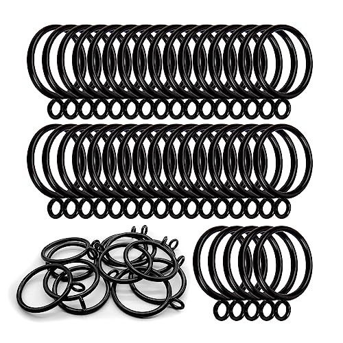 50Pack Metal Curtain Rings 38mm Internal Diameter Drapery Pole Rings, Matte, Rustproof Hangers Ring for Curtain Poles, Shower Curtains Rods (Black)