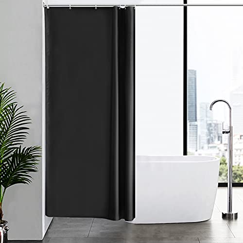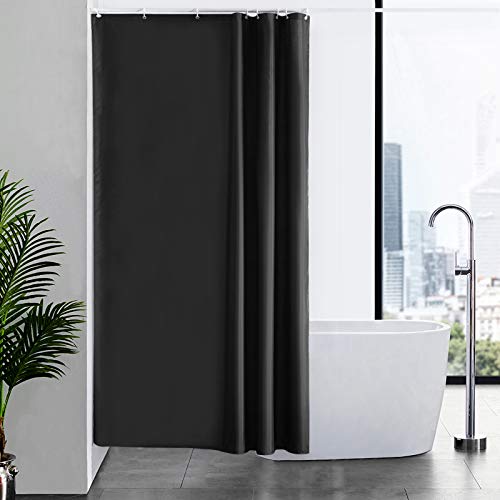 Furlinic Shower Curtain Anti Mould Resistant Waterproof Bathroom Curtains Black Washable Polyester Fabric 100x180cm with Weight Tape for Bath Wet Room 39x72 Inch.
