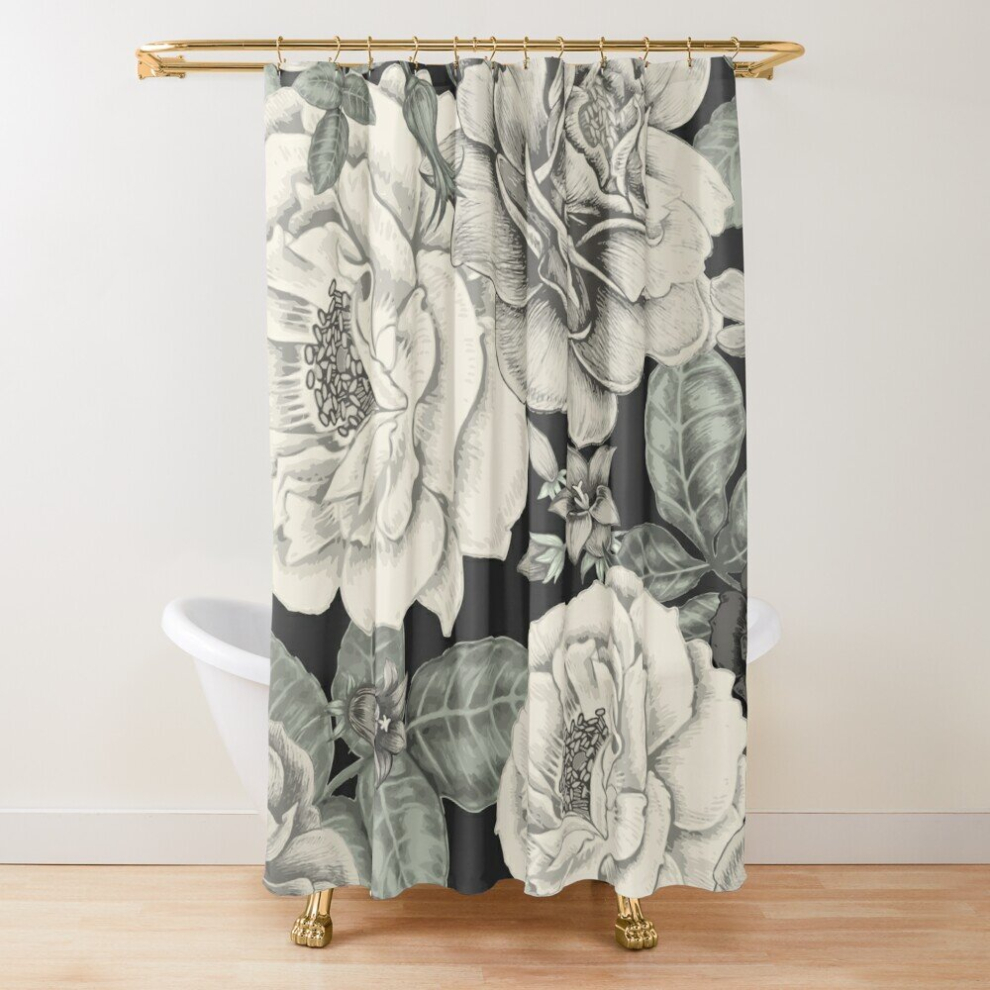 Shower Curtains Medieval Flowers on Black for Bathroom Decor 72x72 inches