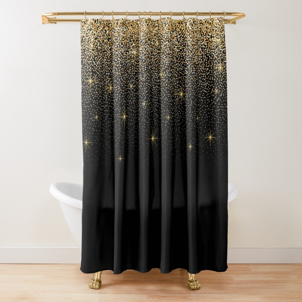 Shower Curtains black and gold glitter pattern for Bathroom Decor 72x72 inches