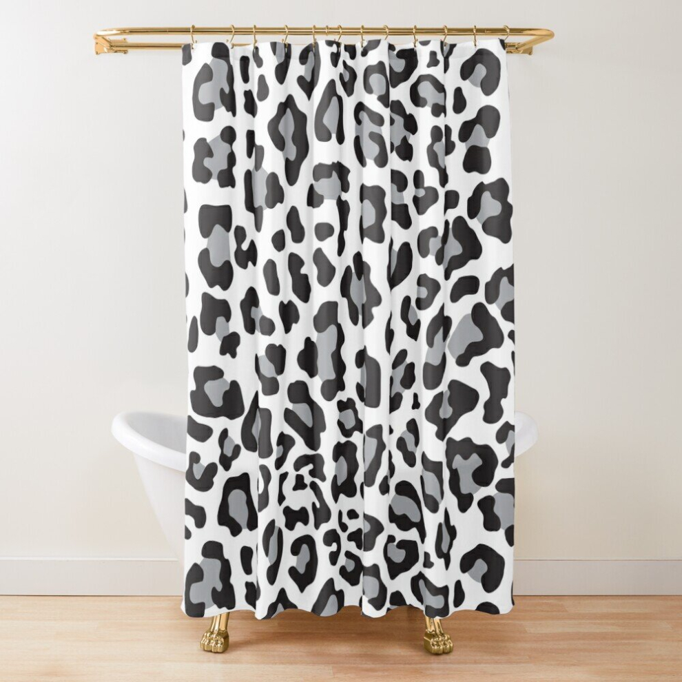 Shower Curtains Black, White and Grey Leopard Print for Bathroom Decor 72x72 inches