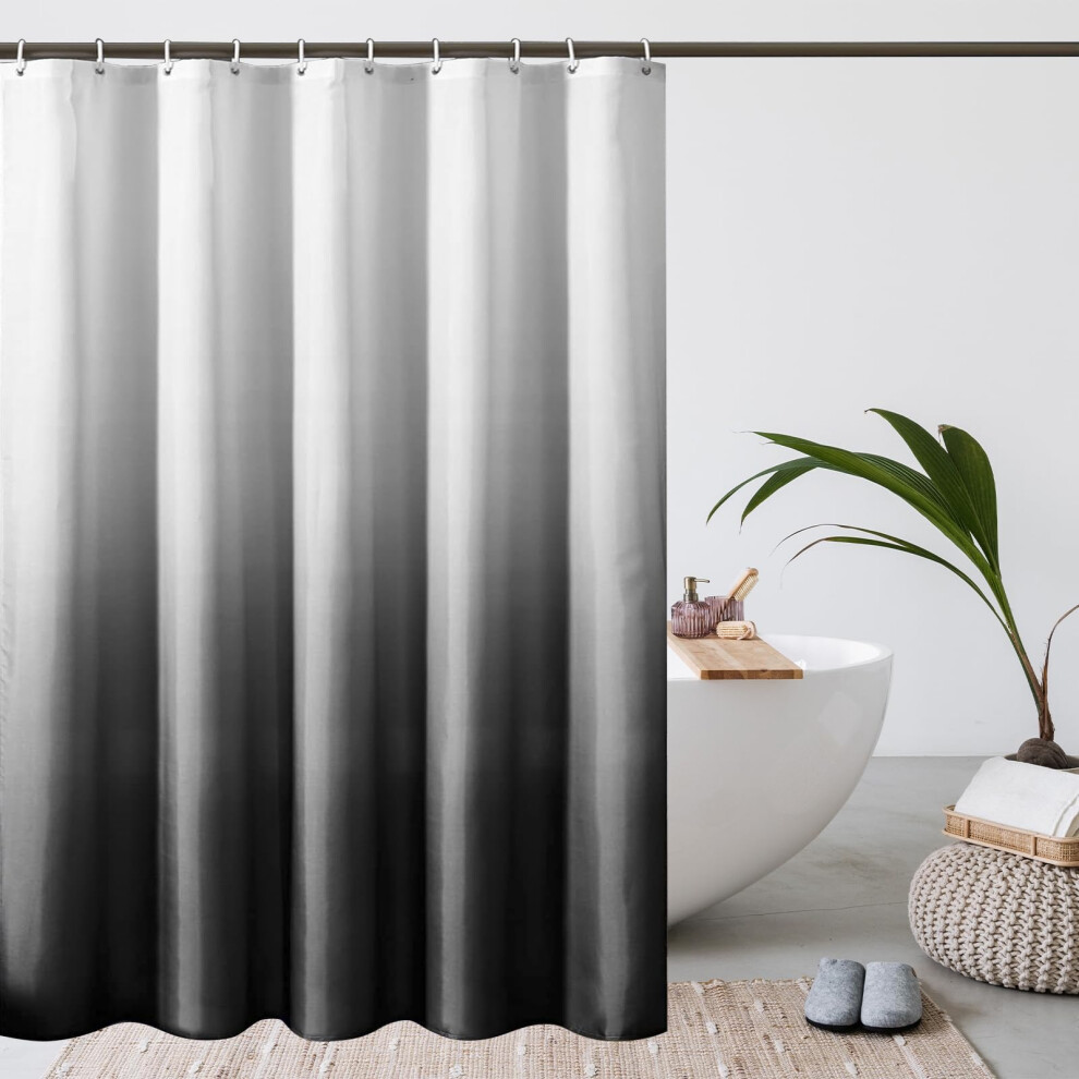 WELTRXE Shower Curtains For Bathroom, Ombre Black 180x180cm Shower Curtain Set With 12 Hooks, Weighted Hem, Water Resistant Quick Dry Polyester
