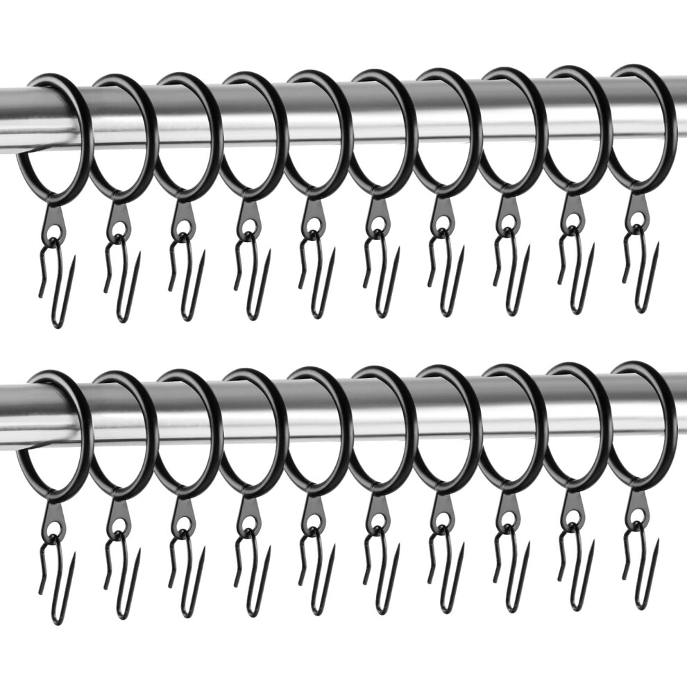 25 Sets Metal Curtain Rings with Eyelets Rustproof Hooks for Shower Curtains Windows Doors Black