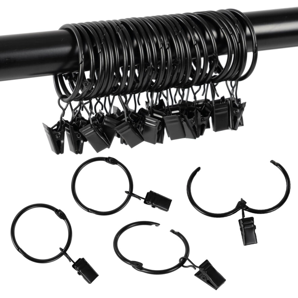 Curtain Rings with Clips 1 Inch Heavy Duty Rustproof Metal Openable Design for Drapes and Shower Curtains Black