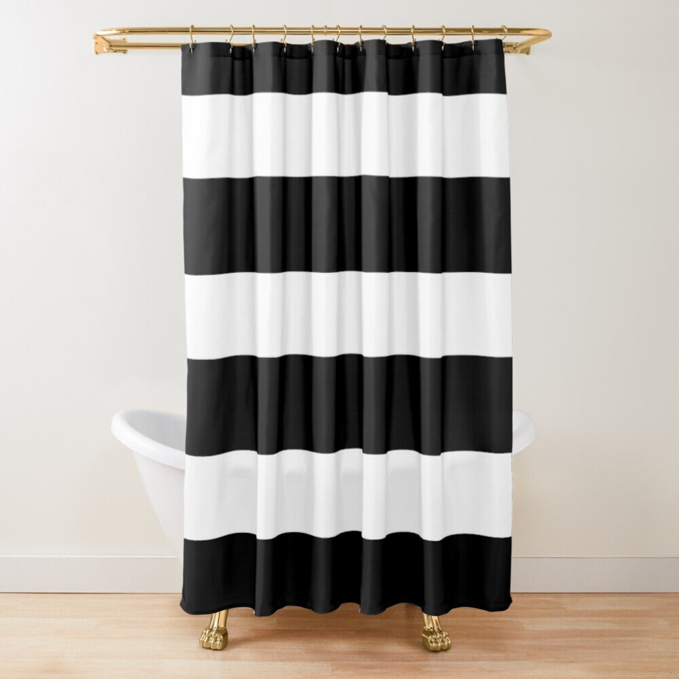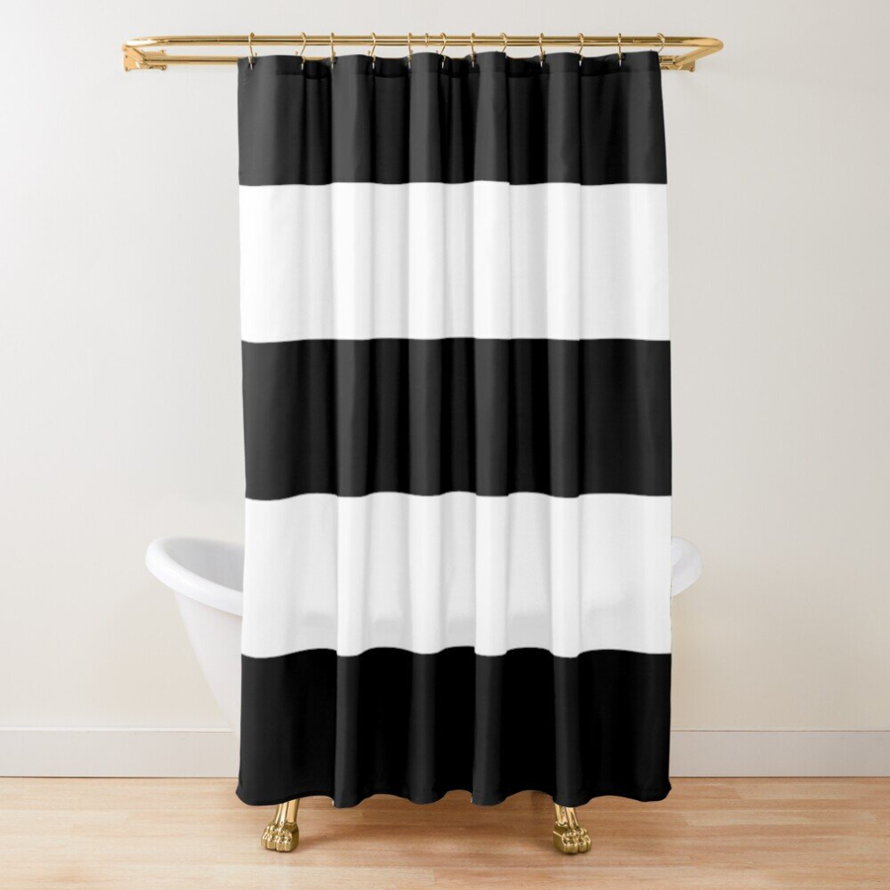 Shower Curtains Large BLACK and WHITE Horizontal STRIPES for Bathroom Decor 72x72 inches