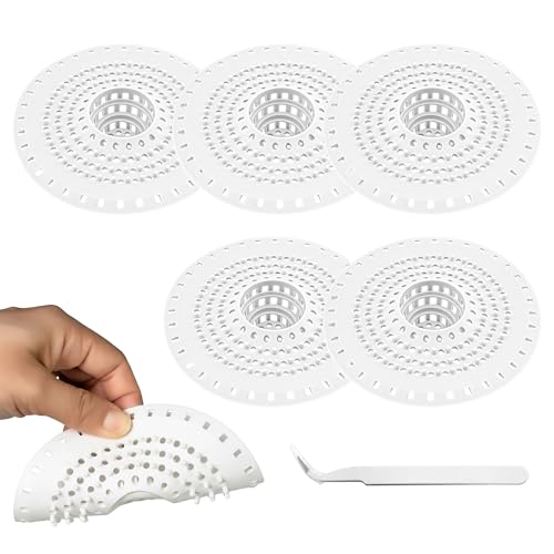 daqoupzi Pack of 5 Drain Strainer Shower Hair (12.2 x 12.5 x 3.5 cm) + 1 Tweezers, White Silicone Drain Strainer, Hair Strainer, Wash Basin, Shower Drain Hair/Pet Hair Catcher