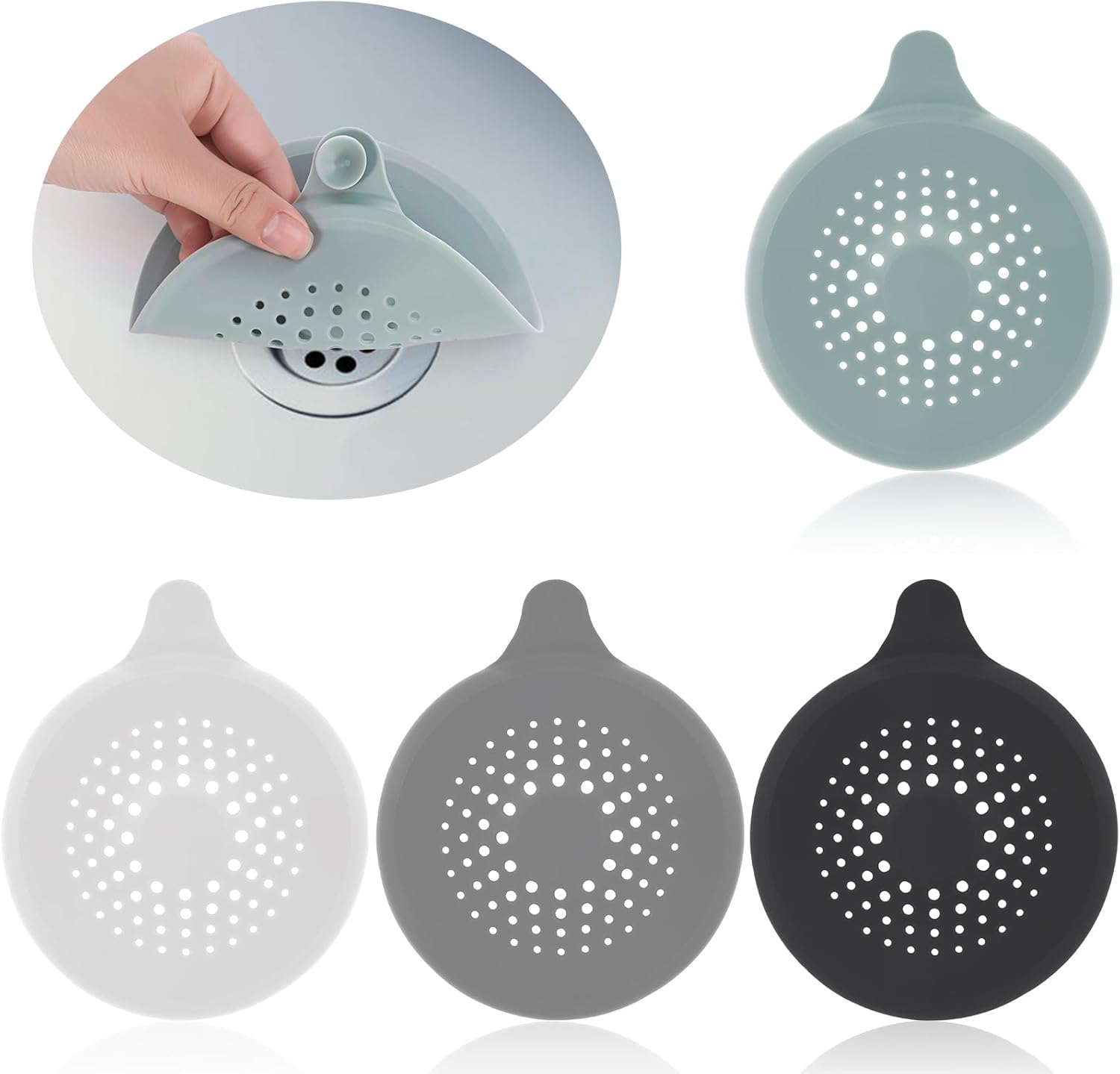 rietegio 4Pcs Silicone Drain Cover Suction Cup Sink Strainer Replacement Sink Strainer Drain Protector Shower Drain Hair Catcher for Bathroom Bathtub Kitchen Outdoor(2White+2Grey)