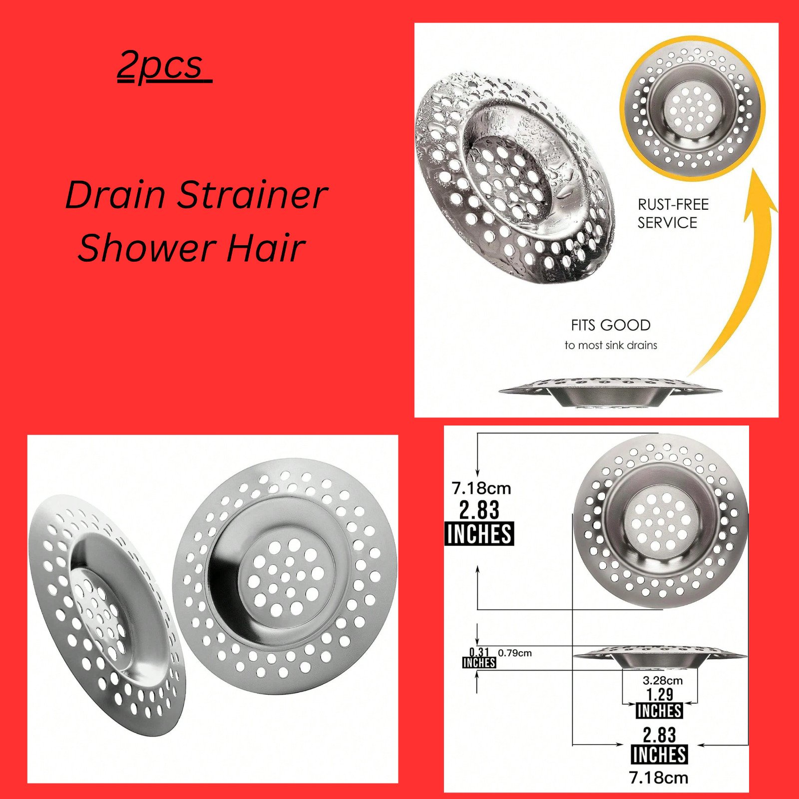 Bathtub Drain Strainer - 2.83 Inch Shower Hair Drain Catcher Stainless Steel