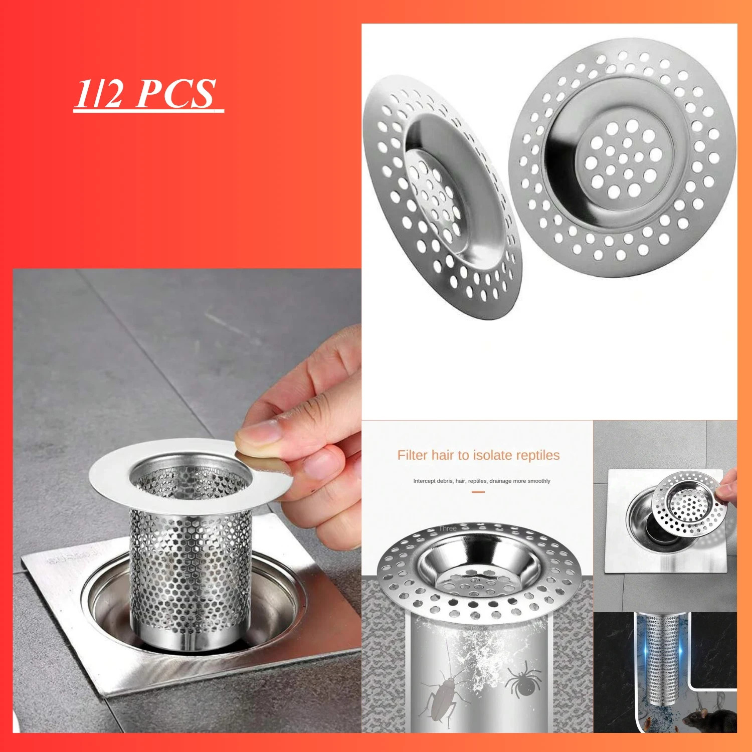 Hair Filter & Bath Tub Floor Shower Drain Hair Catcher Sink Strain Filter