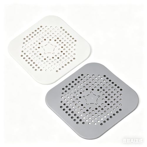 tifanso 2 pcs Silicone Drain Protector with Sucker Sink Strainer Shower Drain Cover Hair Catcher For Shower Drain Strainer Plug Trap Filter for Bathroom (White+Grey)