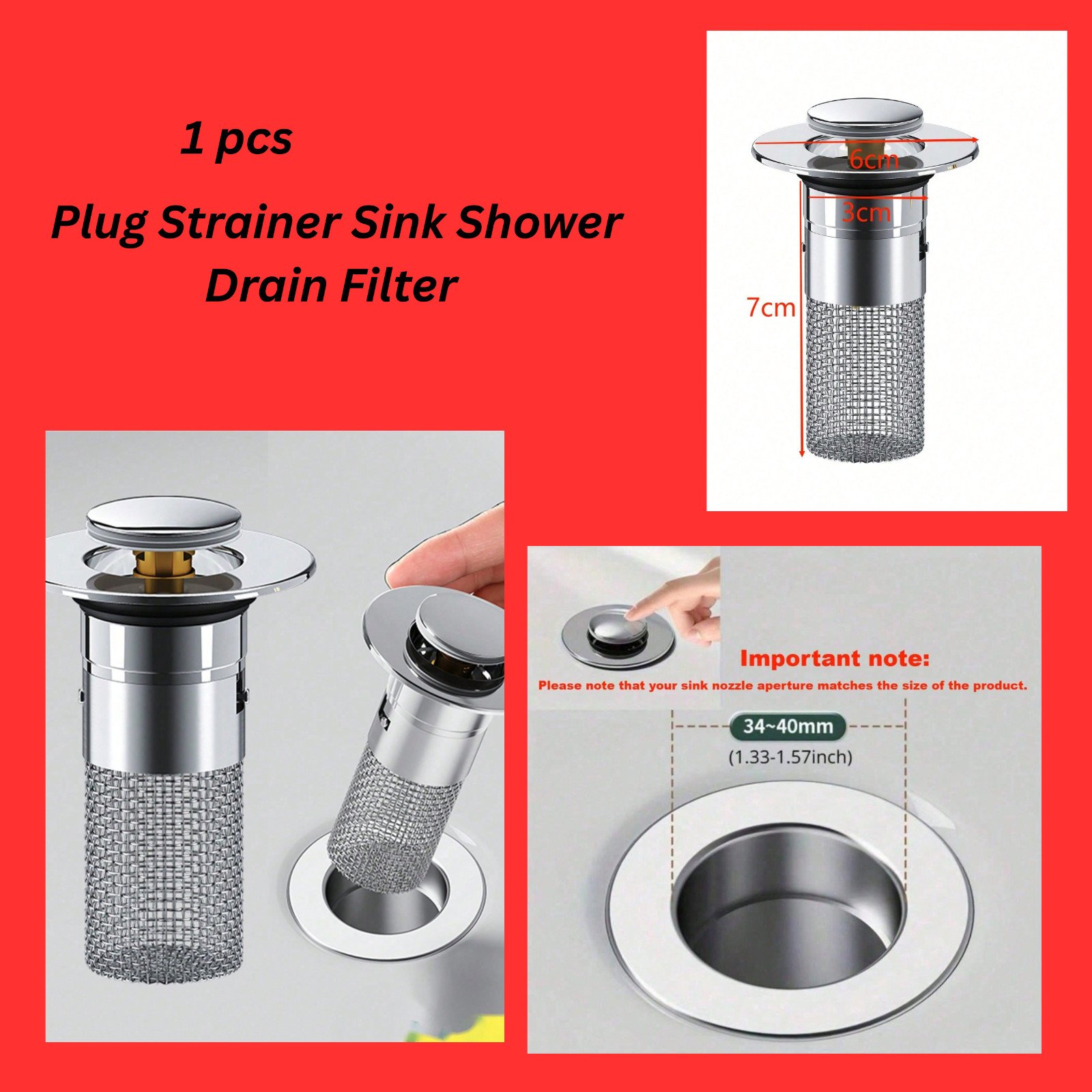 2X Steel Metal Plug Strainer Kitchen Sink Shower Drain Filter Hair Catcher