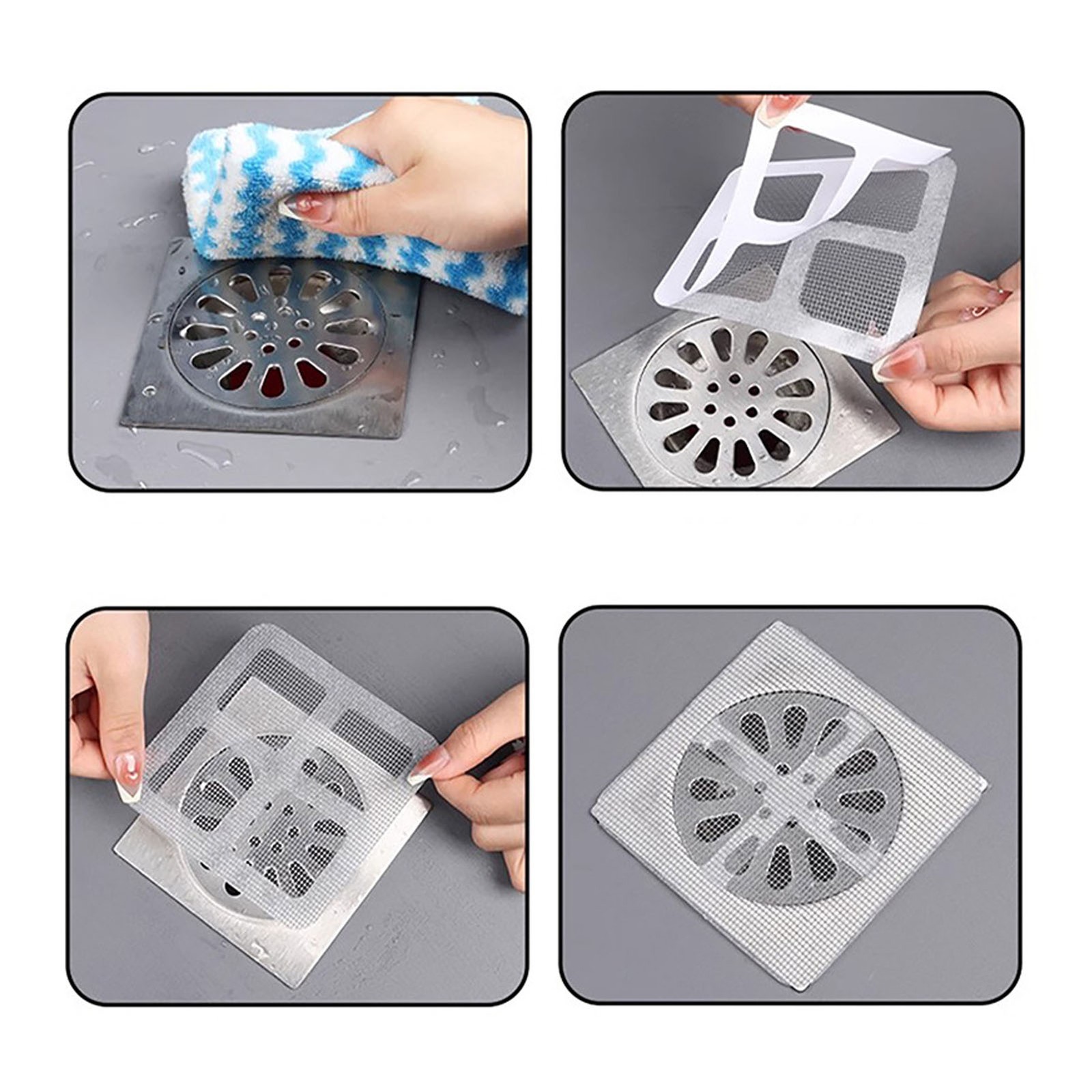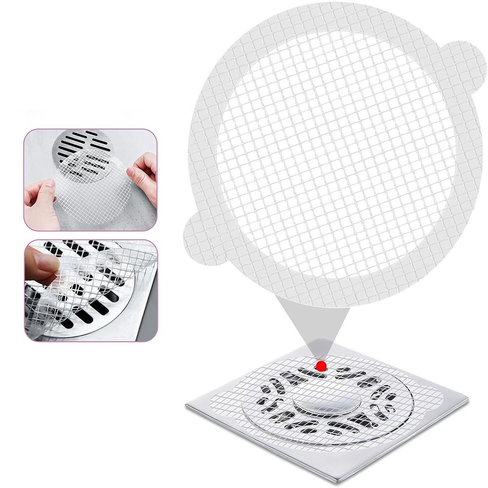 50x Disposable Shower Drain Cover Hair Catcher Shower Drain Mesh Sticker 10x10cm