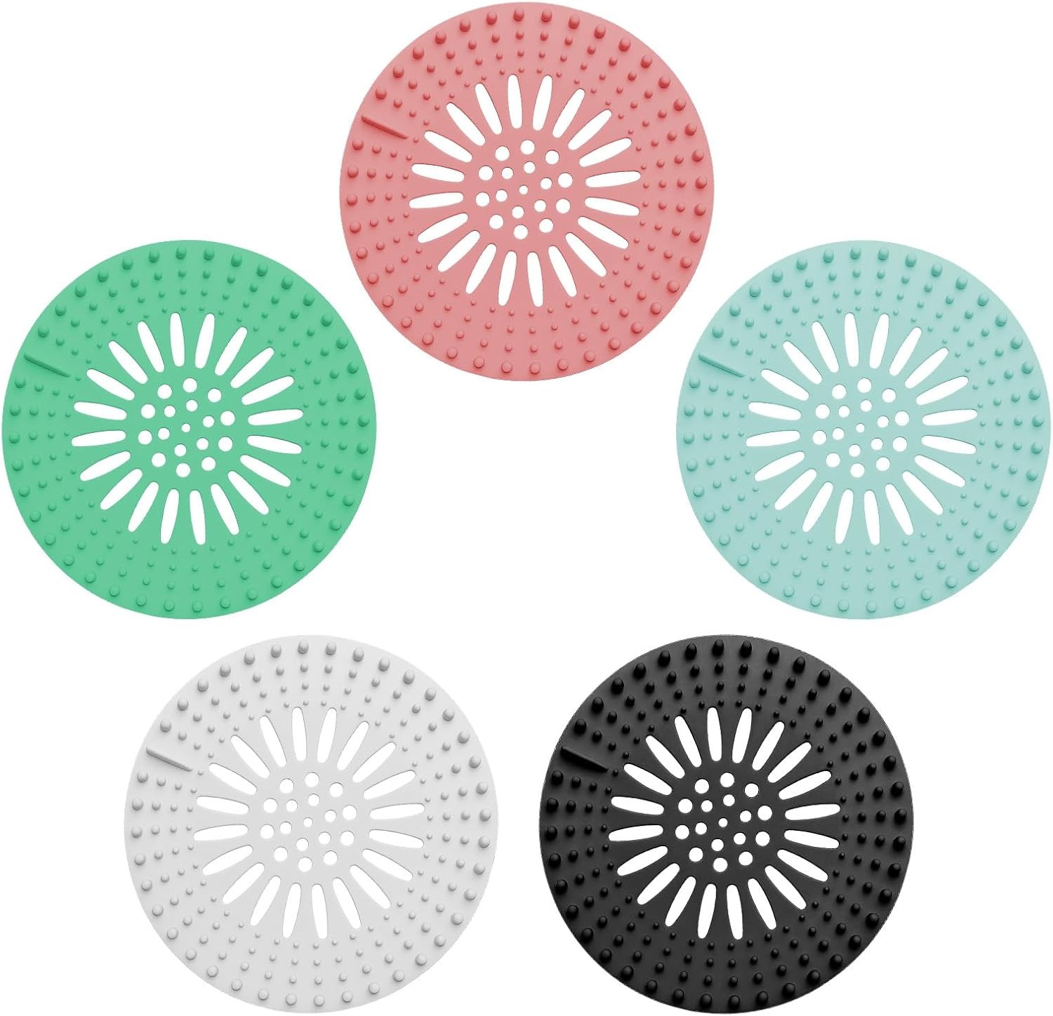 Pack of 5 Shower Drain Hair Catcher Plastic Rubber Strainer for Bathroom