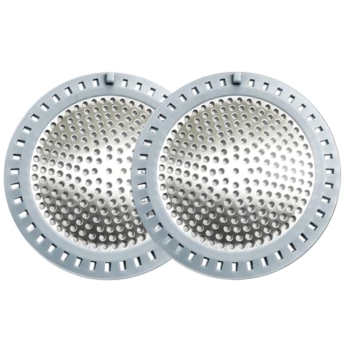 Seatery 2PCS Shower Drain Hair Catcher, Bathtub Drain Strainer, Stainless Steel With Silicone Edging, 4.75 Inch Diameter
