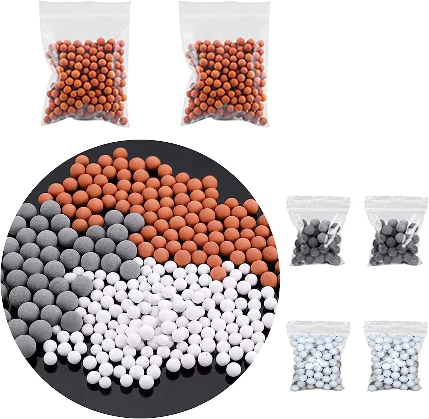 Slirceods Filtered Shower Head Filter Replacement,for Hard Water, Mineral Stone Beads for Purifying Water, Remove Chlorine and Other Impurities (6pack)