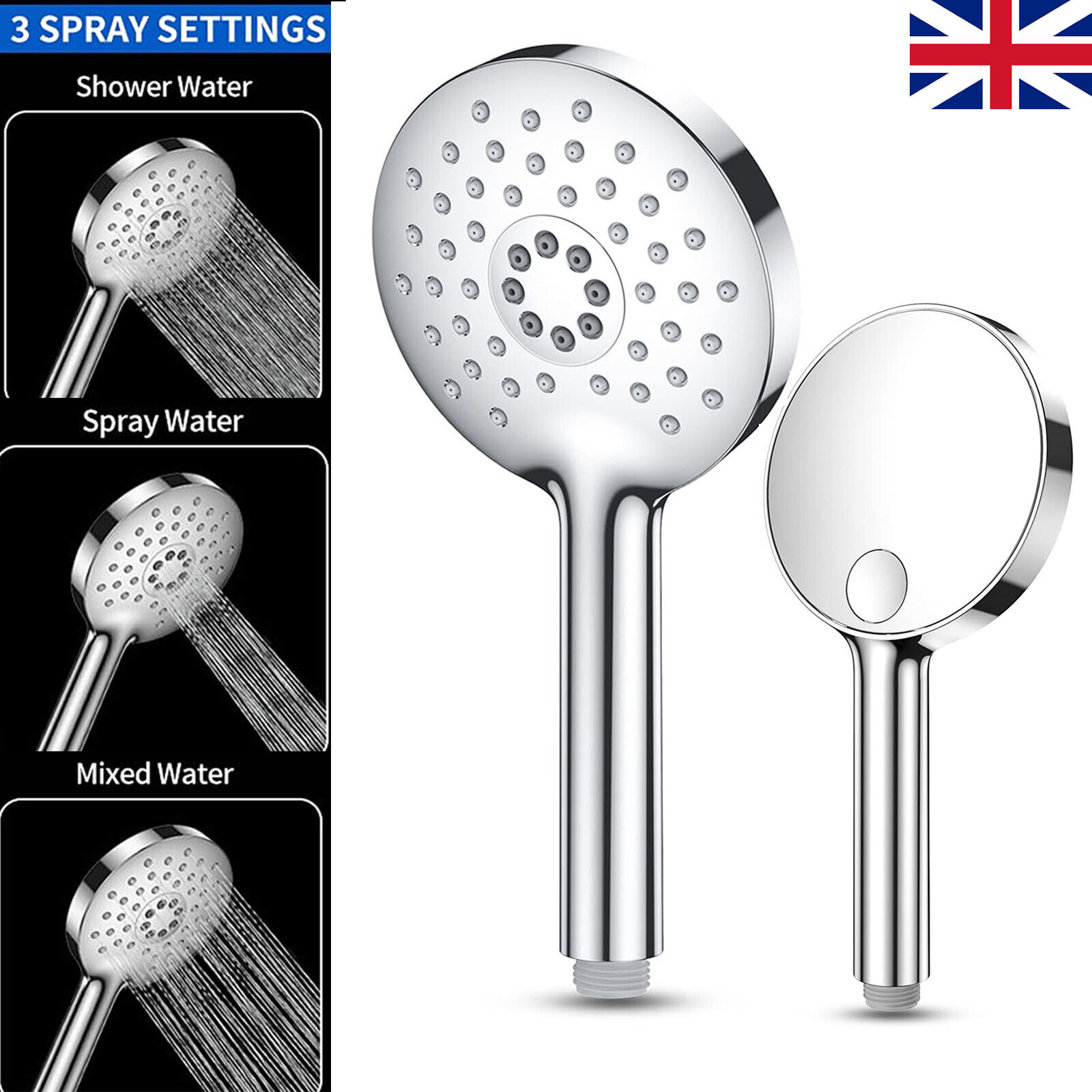 Universal Bathroom 3 Function Shower Head Replacement Chrome Plated Plastic