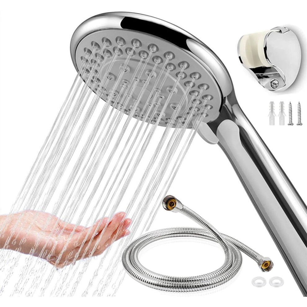 VEHHE Shower Head Powerful Flow with 1.5m Chrome 5 Modes/Silver/With Hose