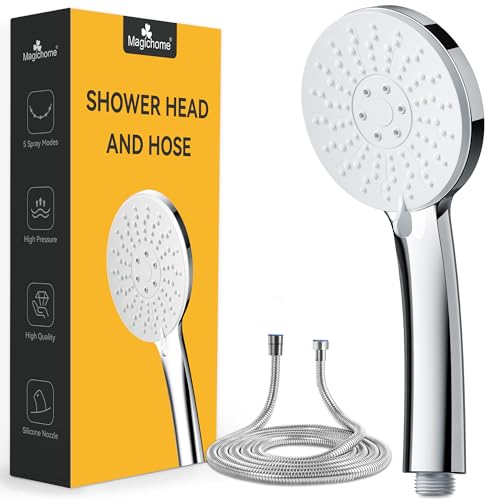 Magichome Shower Head and Hose 1.5m, High Pressure Powerful Chrome Shower Head with 5 Modes, Universal Handheld Showerhead for Low Water Pressure